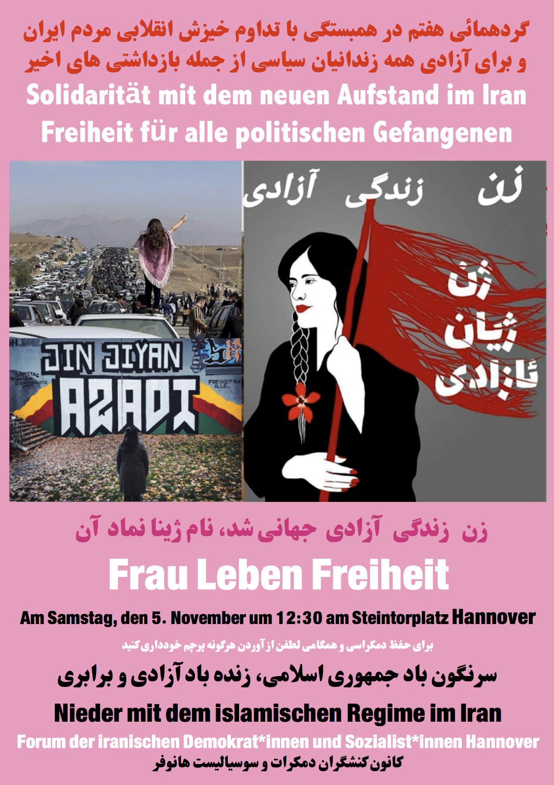 گرد همائی هفتم در همبستگی با تداوم خیزش انقلابی مردم ایران / شنبه 5 نوامبر ساعت 12.30 هانور اشتاین تور Continue Reading Previous: برهان عظیمی :اسناد مهمی در باره دستورالعمل دشمن برای سرکوب انقلابNext: اسامی برخی از بازداشتشدگان کُرد طی یک هفته گذشته دیدگاهتان را بنویسید لغو پاسخنشانی ایمیل شما منتشر نخواهد شد. بخشهای موردنیاز علامتگذاری شدهاند *دیدگاه نام * ایمیل * وبسایت ذخیره نام، ایمیل و وبسایت من در مرورگر برای زمانی که دوباره دیدگاهی مینویسم.