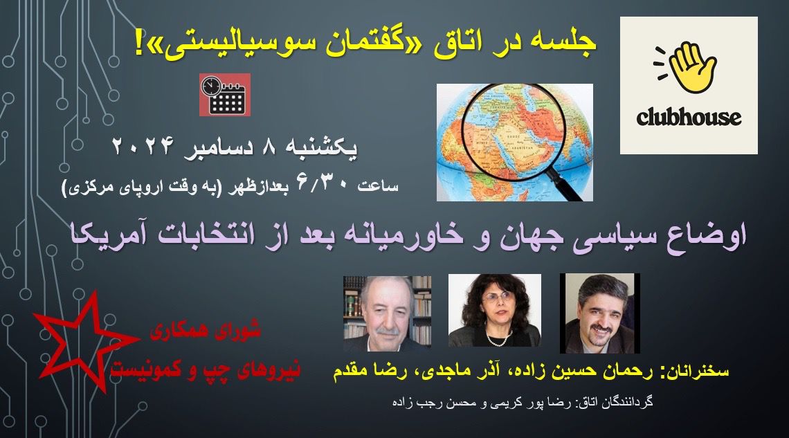اوضاع سیاسی جهان و خاورمیانه بعد از انتخابات آمریکا Continue Reading Previous: پدیده خشونت علیه زنان و افزایش خشونت در شرایط جنگ! – مهرآفاق مقیمیNext: اعلامیه شورای همکاری نیروهای چپ و کمونیست به مناسبت ١٦ آذر روز دانشجو فرزند کارگرانیم، درکنارشان میمانیم دیدگاهتان را بنویسید لغو پاسخنشانی ایمیل شما منتشر نخواهد شد. بخشهای موردنیاز علامتگذاری شدهاند *دیدگاه نام * ایمیل * وبسایت ذخیره نام، ایمیل و وبسایت من در مرورگر برای زمانی که دوباره دیدگاهی مینویسم.