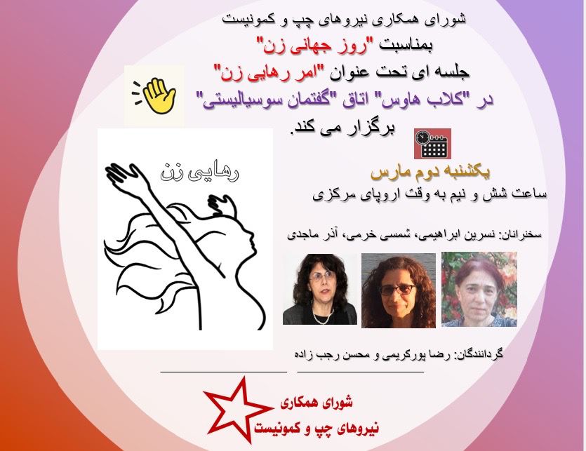 شورای همکارینیروهای چپ و کمونیست Continue Reading Previous: هماهنگی زن برابری:شریفه محمدی دوباره به اعدام محکوم شد،Next: گزارش از خبرها و مبارزات انقلابی مردم ایران در شنبه و یکشنبه – بیست و هفتم و بیست و هشتم بهمن ماه برابر با پانزدهم و شانزدهم فوریه دیدگاهتان را بنویسید لغو پاسخنشانی ایمیل شما منتشر نخواهد شد. بخشهای موردنیاز علامتگذاری شدهاند *دیدگاه نام * ایمیل * وبسایت ذخیره نام، ایمیل و وبسایت من در مرورگر برای زمانی که دوباره دیدگاهی مینویسم.