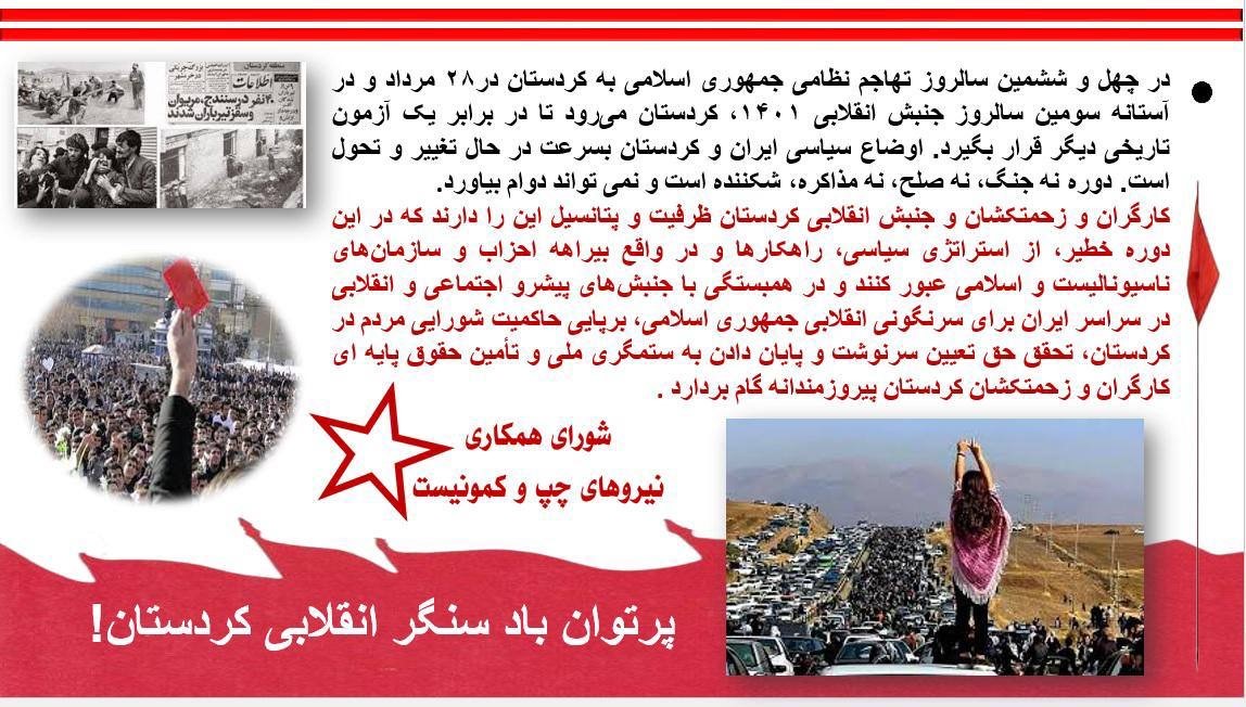 شورای همکاری نیروهای چپ و کمونیست- پر توان باد سنگر انقلابی کردستان Continue Reading Previous: اطلاعیه شورای همکاری نیروهای چپ و کمونیست علیه حکم قتل شریفه محمدی دستگیری و شکنجه و مرگ، مجازات کارگران غیرمتشکلNext: اطلاعیه شورای همکاری نیروهای چپ و کمونیست : در یادمان هزاران زندانی قتلعام شده در دهه خونین ۶۰ ، کشتار تابستان ۶۷ زخمی که همچنان خون چکان است دیدگاهتان را بنویسید لغو پاسخنشانی ایمیل شما منتشر نخواهد شد. بخشهای موردنیاز علامتگذاری شدهاند *دیدگاه نام * ایمیل * وبسایت ذخیره نام، ایمیل و وبسایت من در مرورگر برای زمانی که دوباره دیدگاهی مینویسم.